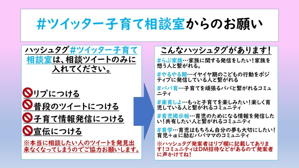 ☑他のパパママはどうしてるの?#ツイッター子育て相談室 で聞いてみませんか?